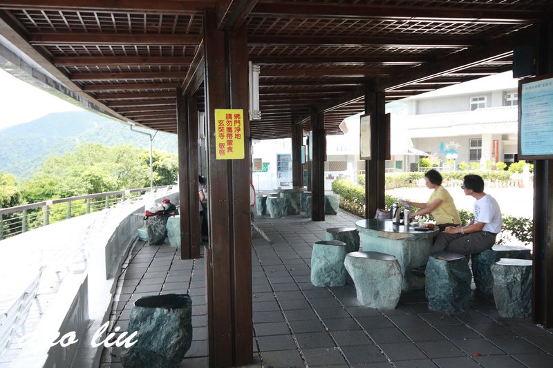 觀景平台再往內側一點的休憩石頭座椅區~上方還設有遮雨蓬,