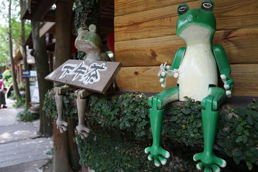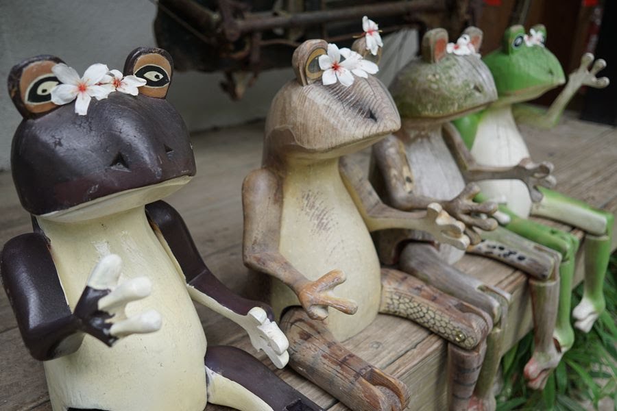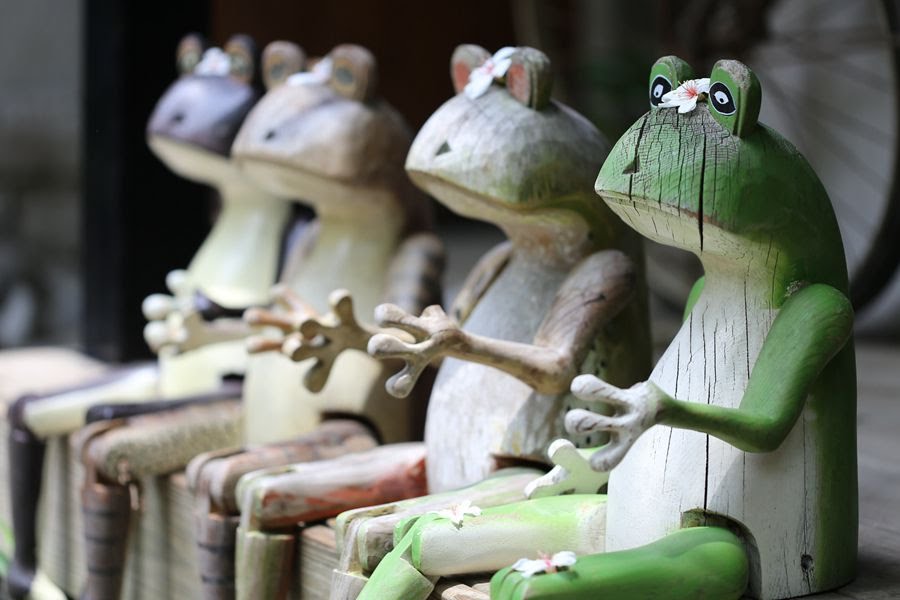 卓也小屋民宿園區裡,可愛的青蛙排排坐