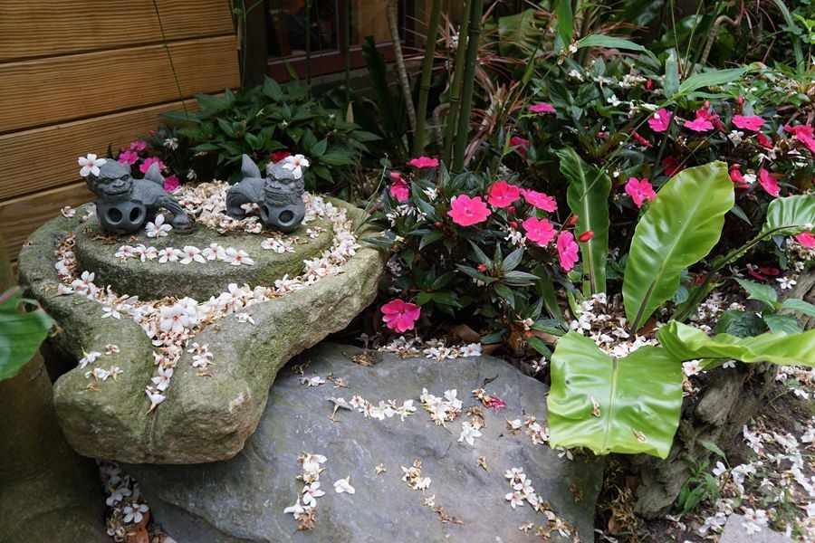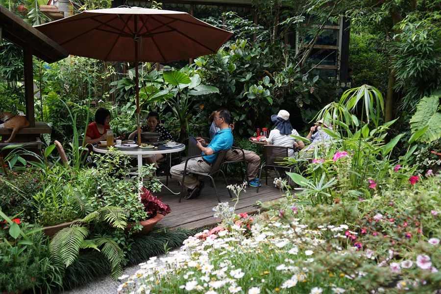 通往小屋餐廳園區的小徑,花草茂密綠意盎然